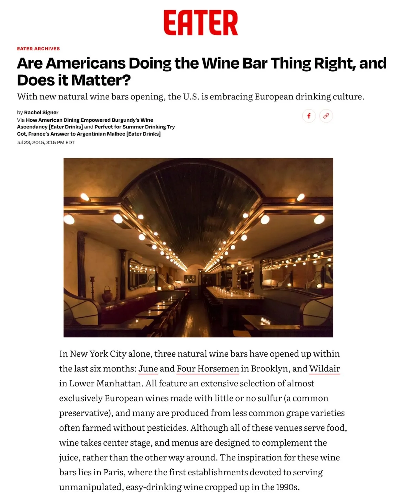 June was established in Summer 2015 as the first natural wine bar in Brooklyn.